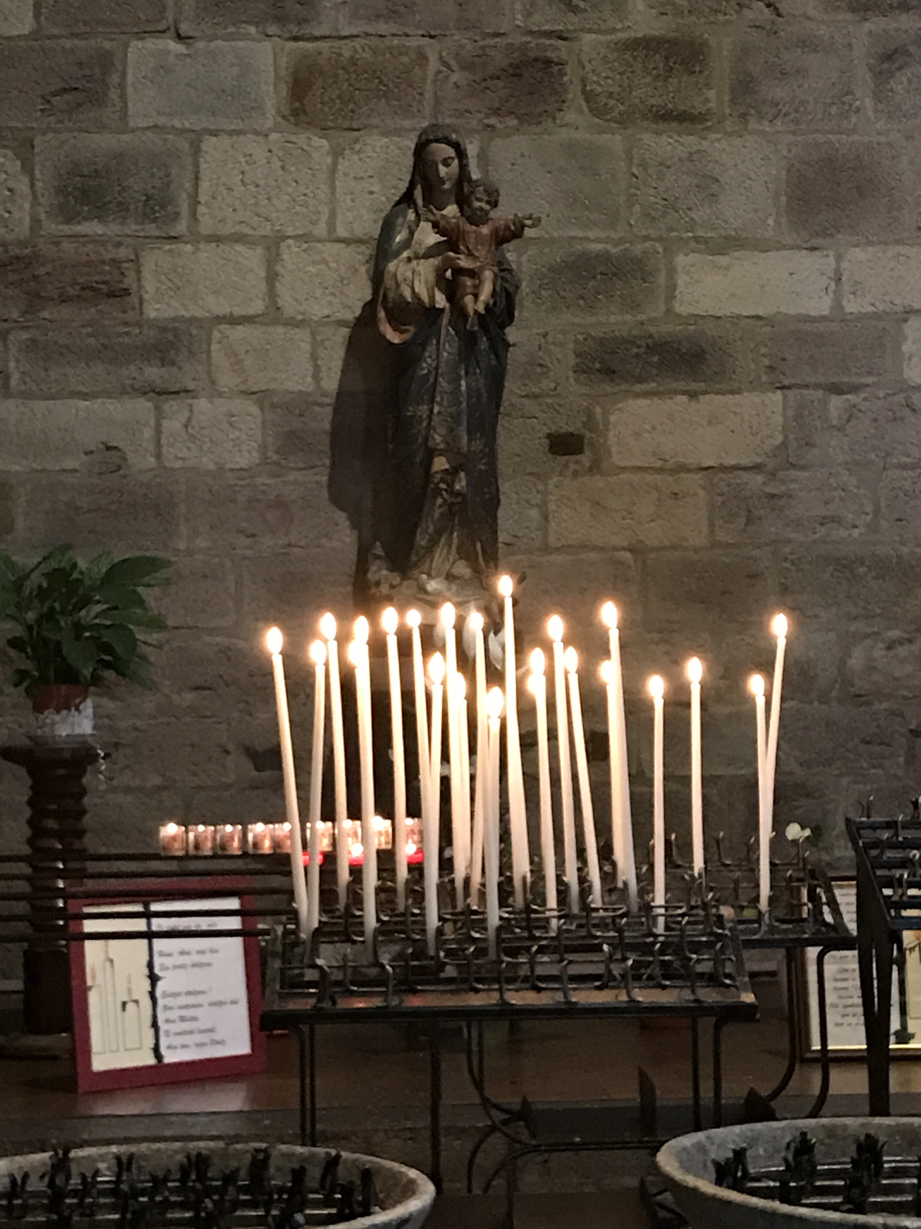 We stopped by the town church to light a candle for our pilgrimage. A beautiful statute of Mary overlooked the candles lit by pilgrims from all around the world.