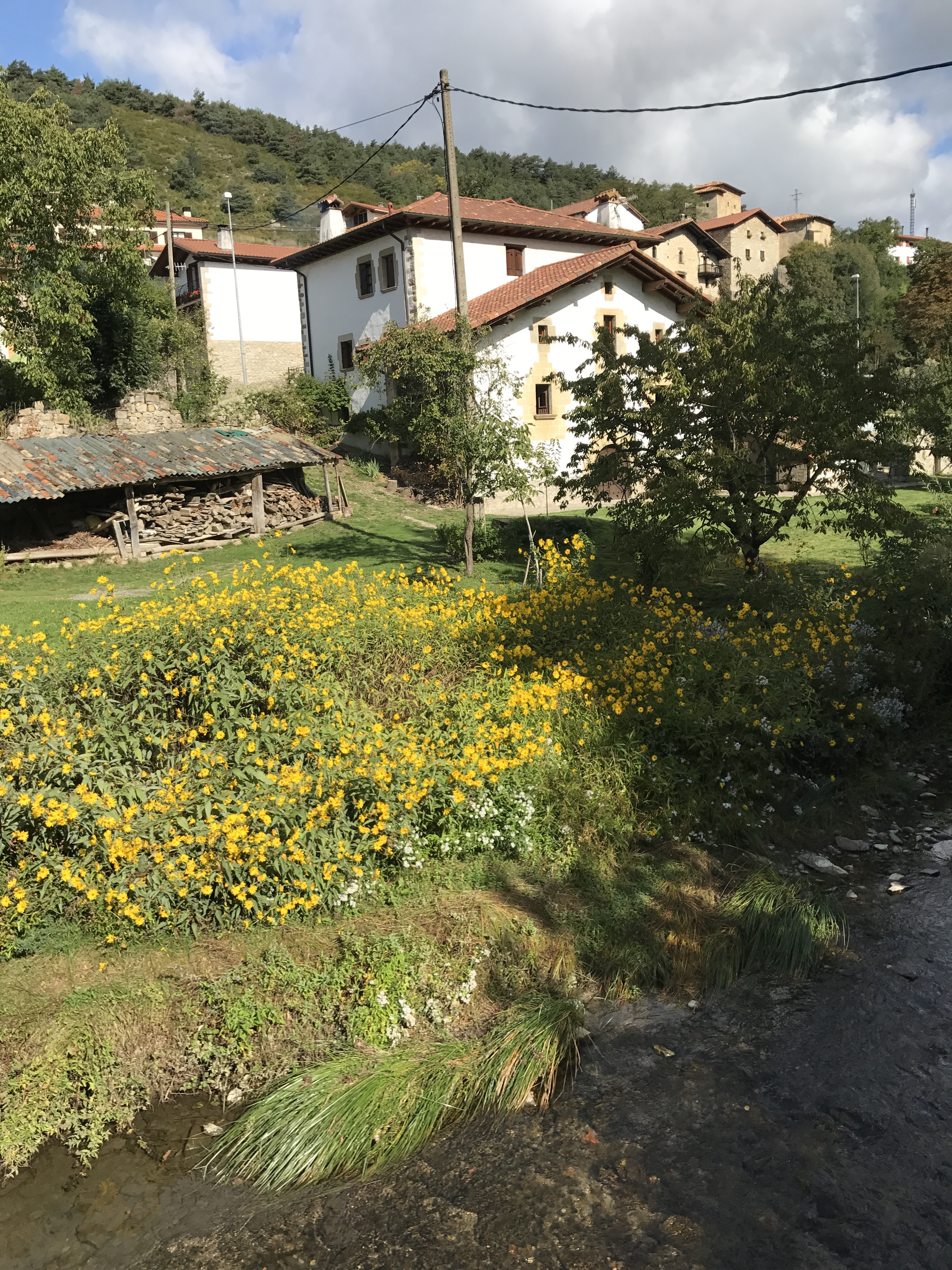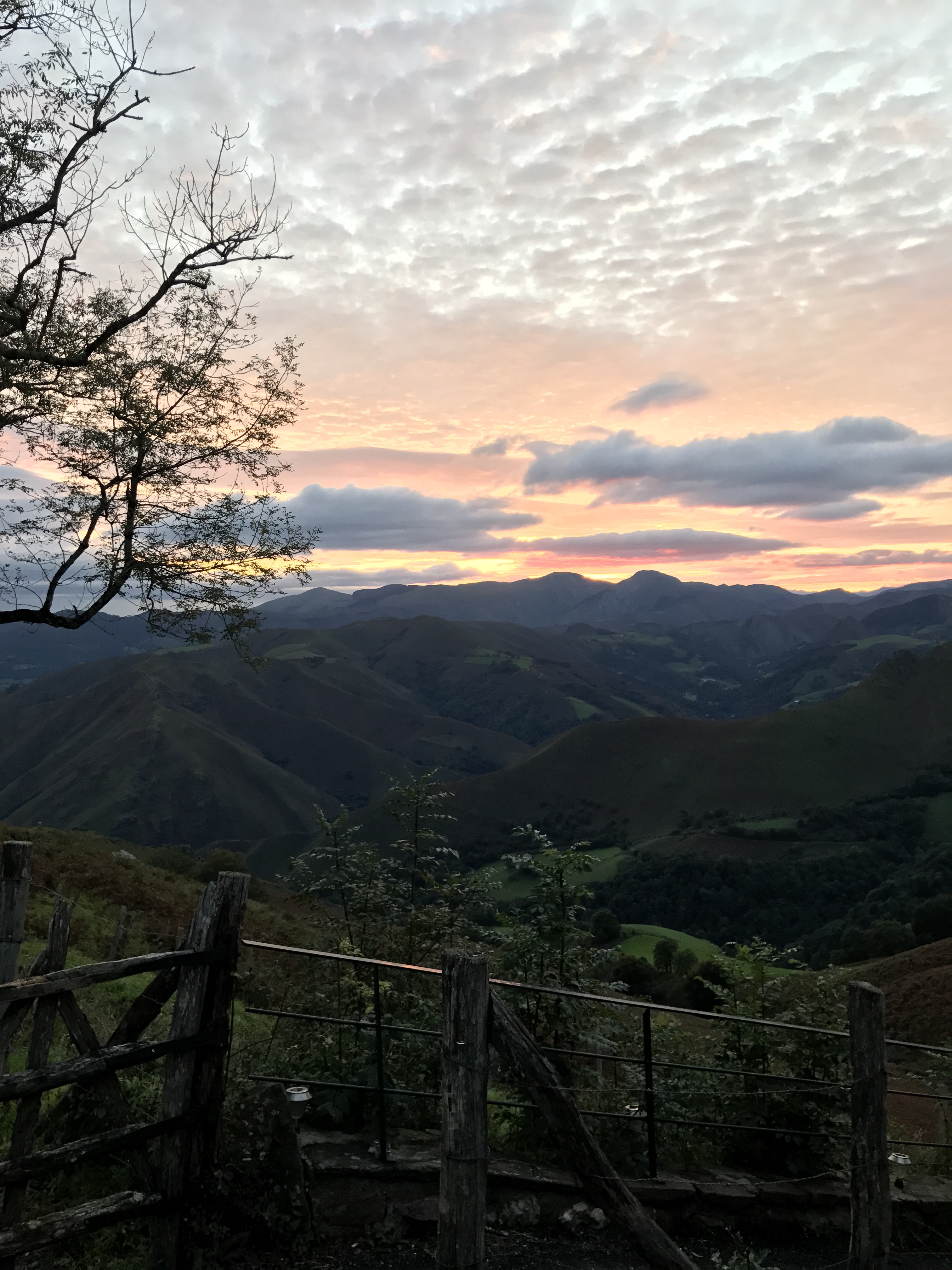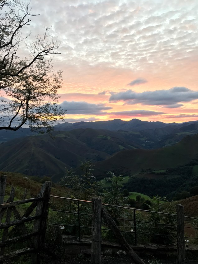 In the evening, we joined with the other 18 pilgrims in our albergue for dinner. Many countries were represented – France, USA, Canada, Mexico, Germany and Korea. Introductions were made, wine drank and new friends made. Dinner included soup, salad, potato tortilla, tiramisu and tea. Our host grew up in Basque (the region of France and Spain we are in) and he speaks four languages (Basque, Spanish, French and English). We kept him busy translating between all of us. I was especially touched by the Korean family – a father and his young daughter (11) and son (13). He told us that his work keeps him so busy that he felt he was missing his kids grow up. So he took a 6 month leave of absence to travel with his children. They are hiking the Camino together and then visiting England and Italy.