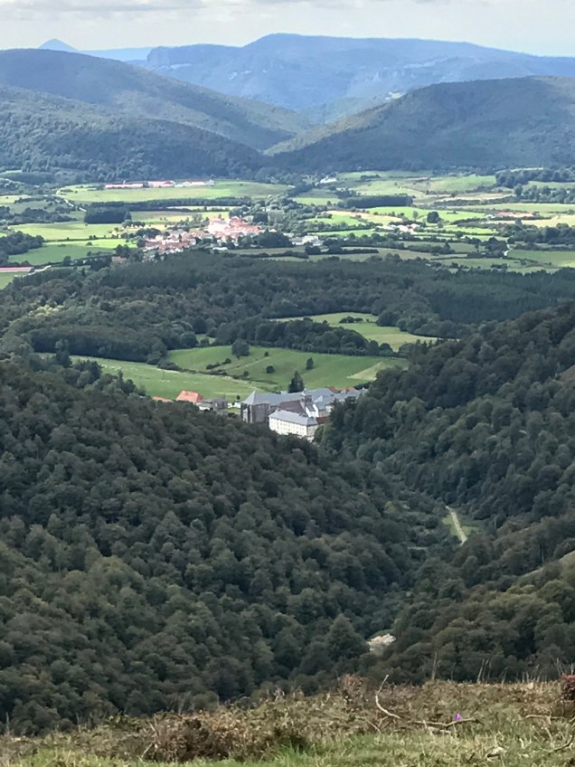 Our destination, Zariquegui, is a tiny country hamlet with only 2 albergues. The room in our albergue contained 5 bunk beds. We get settled into our bunks and head downstairs for dinner. Two other pilgrims join our table, a woman from San Francisco and a woman from Denmark. The lady from Denmark tells us about the dairy and pig farm she and her husband run. We also catch up with Sandra from Tampa, who we first met our second night in St Jean Pied de Port and have crisscrossed paths with all along the trail. There is a feeling of kinship and community building on the trail. A shared joy is felt when you see a familiar face. Trail stories are shared…where you stayed, how hard a certain section was, changes in plans, injuries, how mutual friends are doing, etc…