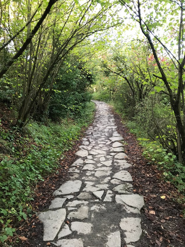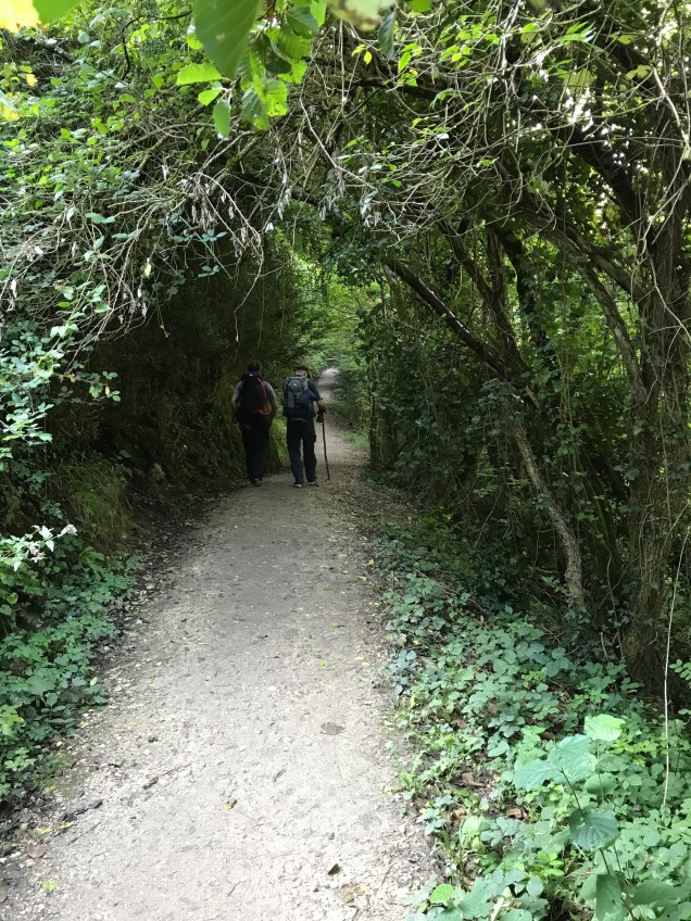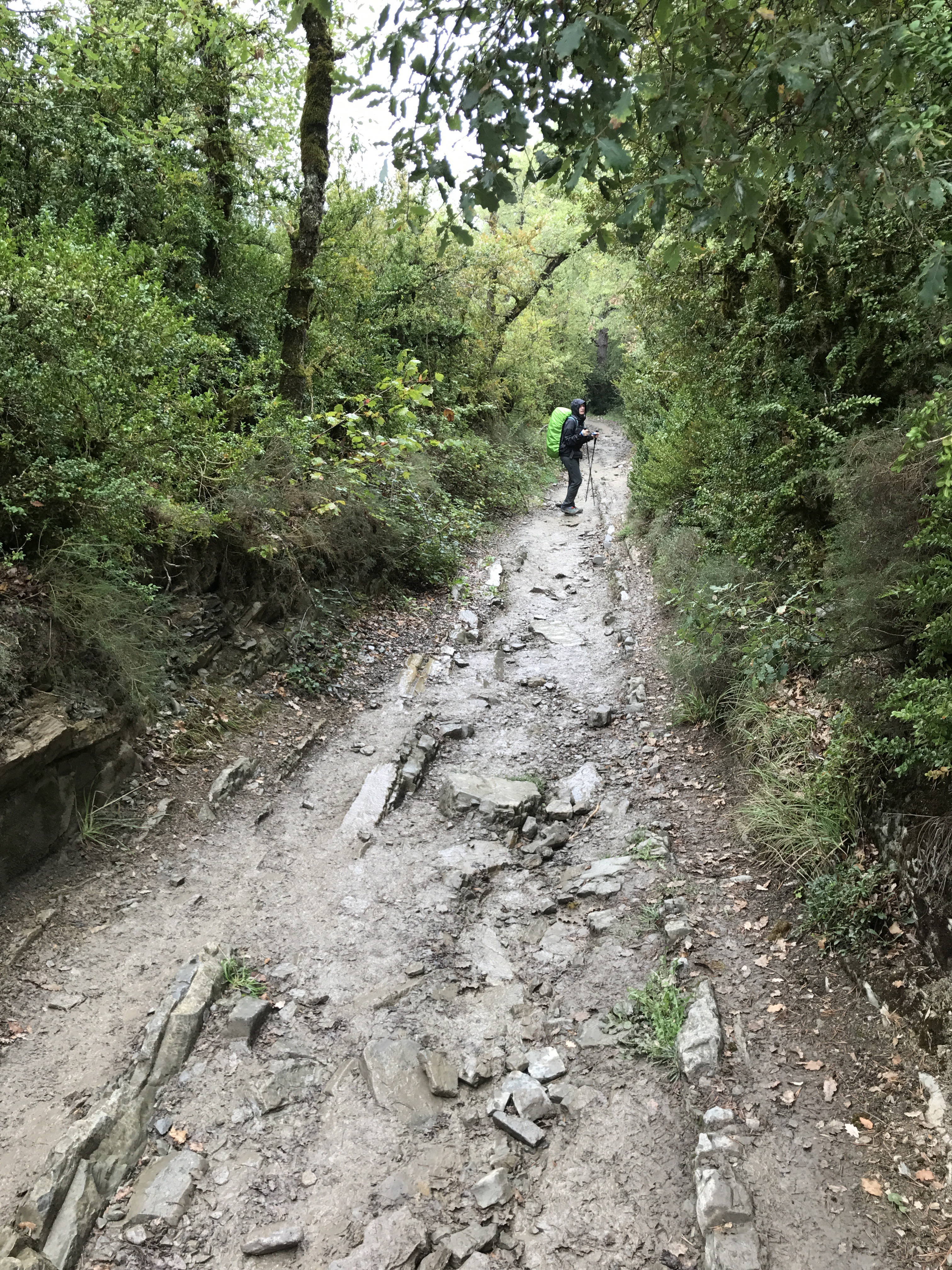 It was a beautiful sunny day. We mainly walked through small forest paths that ran between small country hamlets. However, there were still many ascents and descents. My body is definitely becoming stronger. On our first hike, I had to stop every few feet to catch my breath on a steep ascent. Now, I’m zipping right up them. But the descents are a different story. My knees ache with each step down. And other parts are starting to hurt…my shoulder blade, my left big toe, the spot just under my big toe, my heels. The soles of my feet feel bruised.