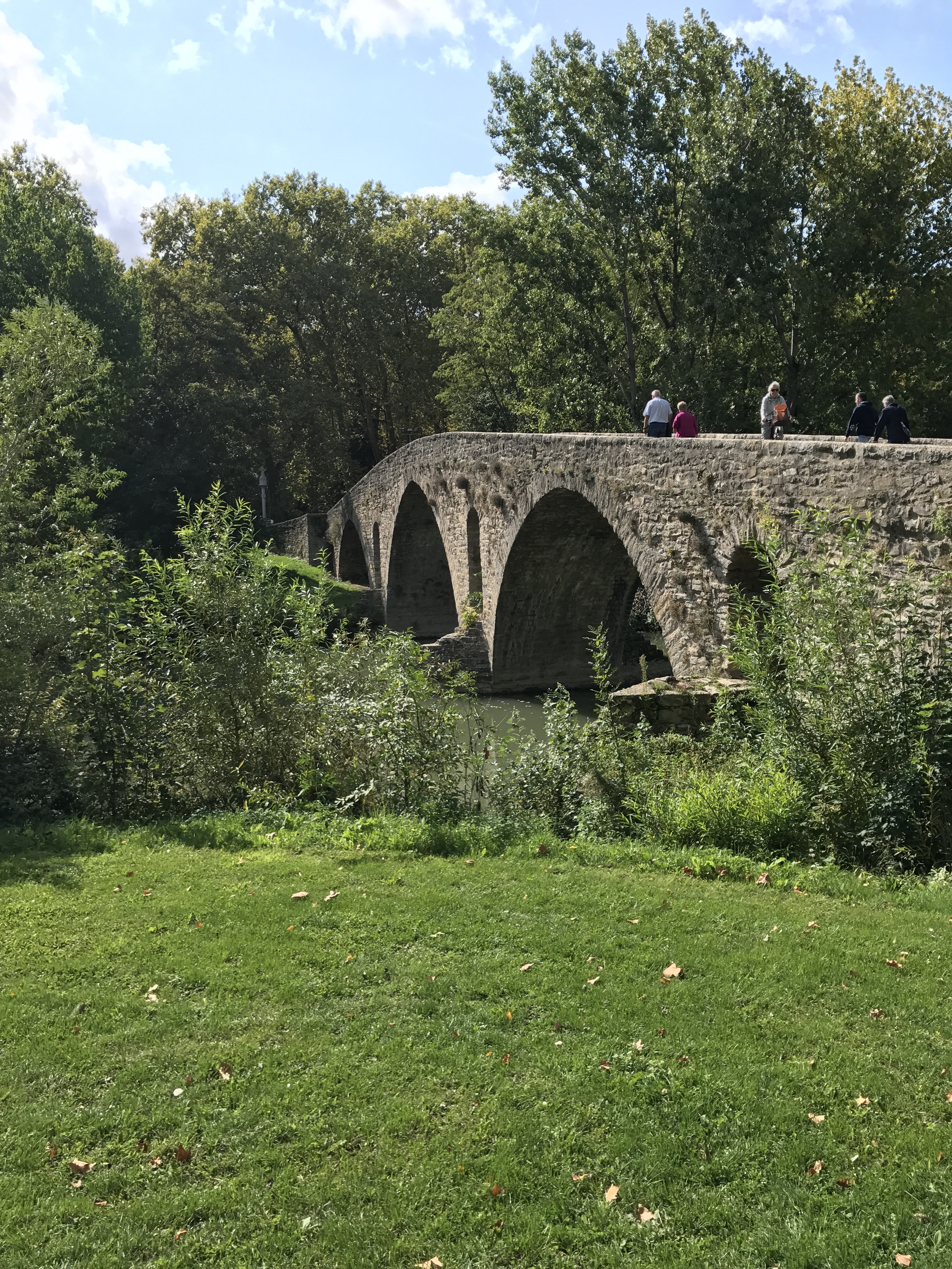 We walked under a bridge and a man was playing a harmonica for us pilgrims. Anytime I hear a harmonica, I think of my dad who passed on in 2011. The harmonica was one of his favorite instruments and he could play fairly well. I sat and listened to the man play and reminisced about my dad. I said a little prayer to him, told him how much I miss and love him.