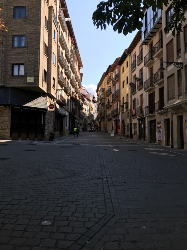 What we didn’t account for was the size of Pamplona. It seemed never ending. First, we entered the suburbs and searched out some water. But finding the water pulled us off the marked trail and we had to navigate our way back, which took some effort and time our exhausted bodies could ill afford. We finally entered the historic district where the running of the bulls takes place. I felt like I had been stampeded by a herd of bulls by this point. We had been walking for 7 hours.