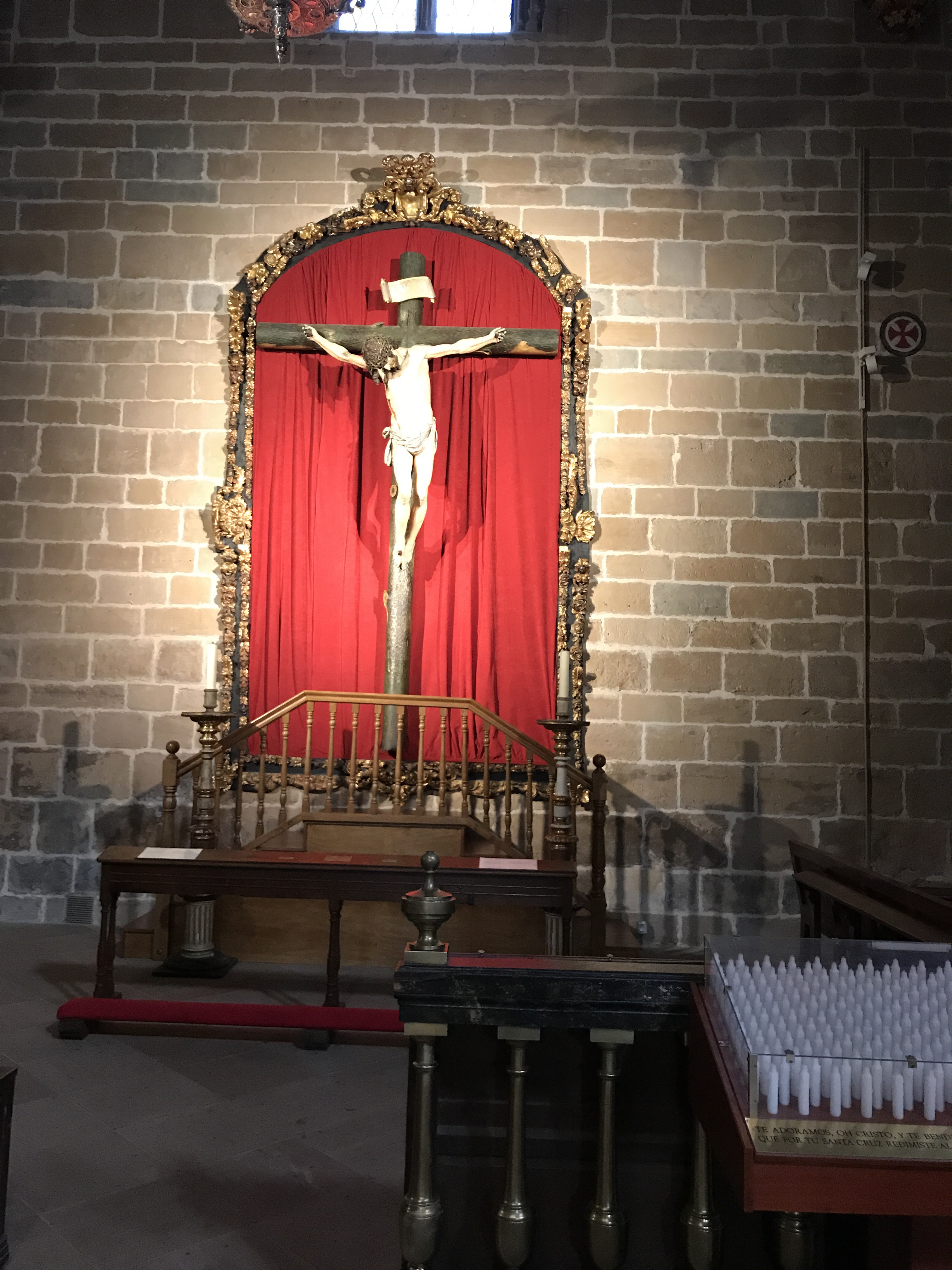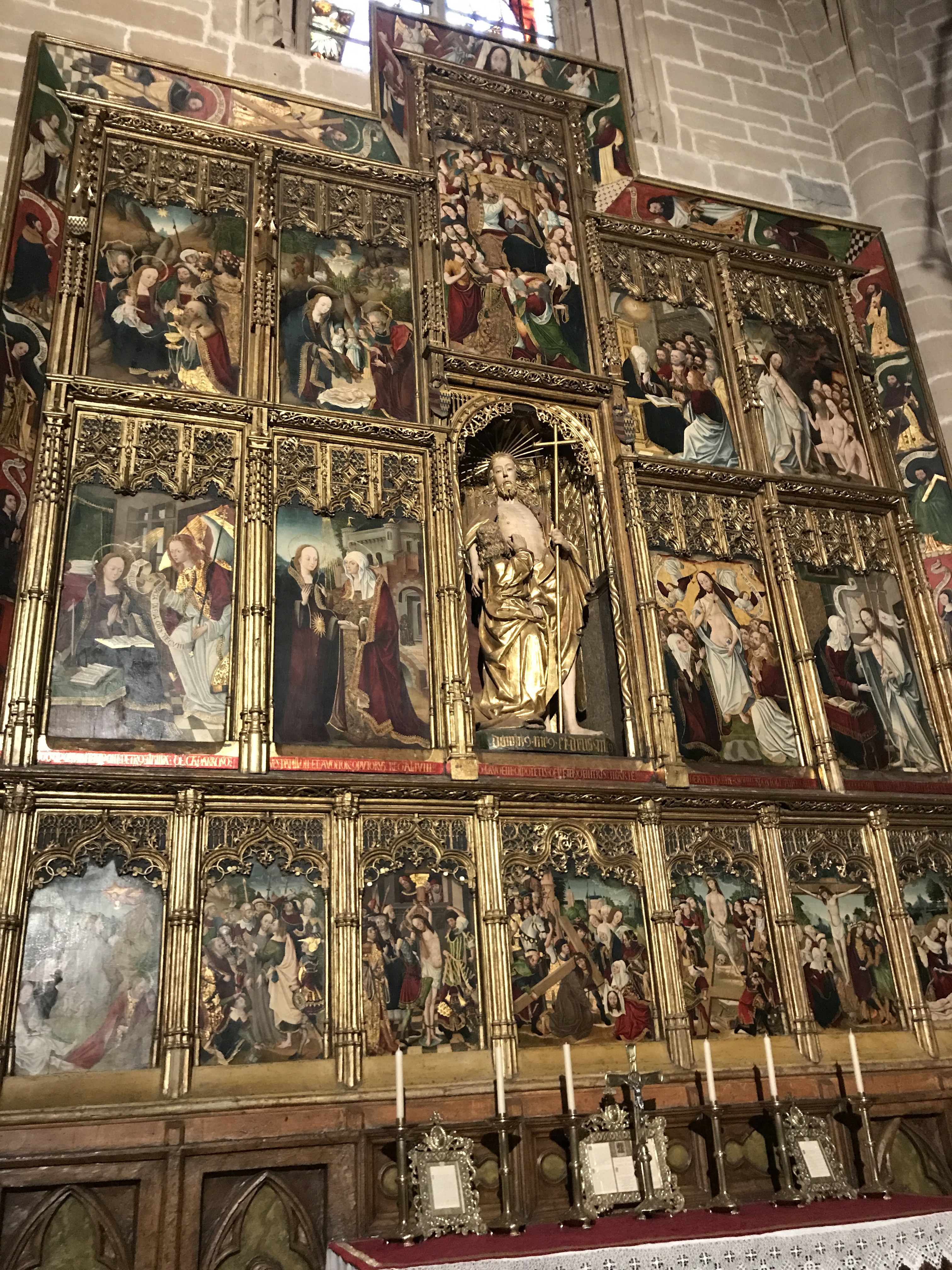 After we settled into our bunks, we headed over to Pilgrim’s Mass. The church centerpiece is Our Lady of Roncesvalles, a gleaming statue of Mary under a silver canopy. It was breathtaking and, honestly, stole the show.