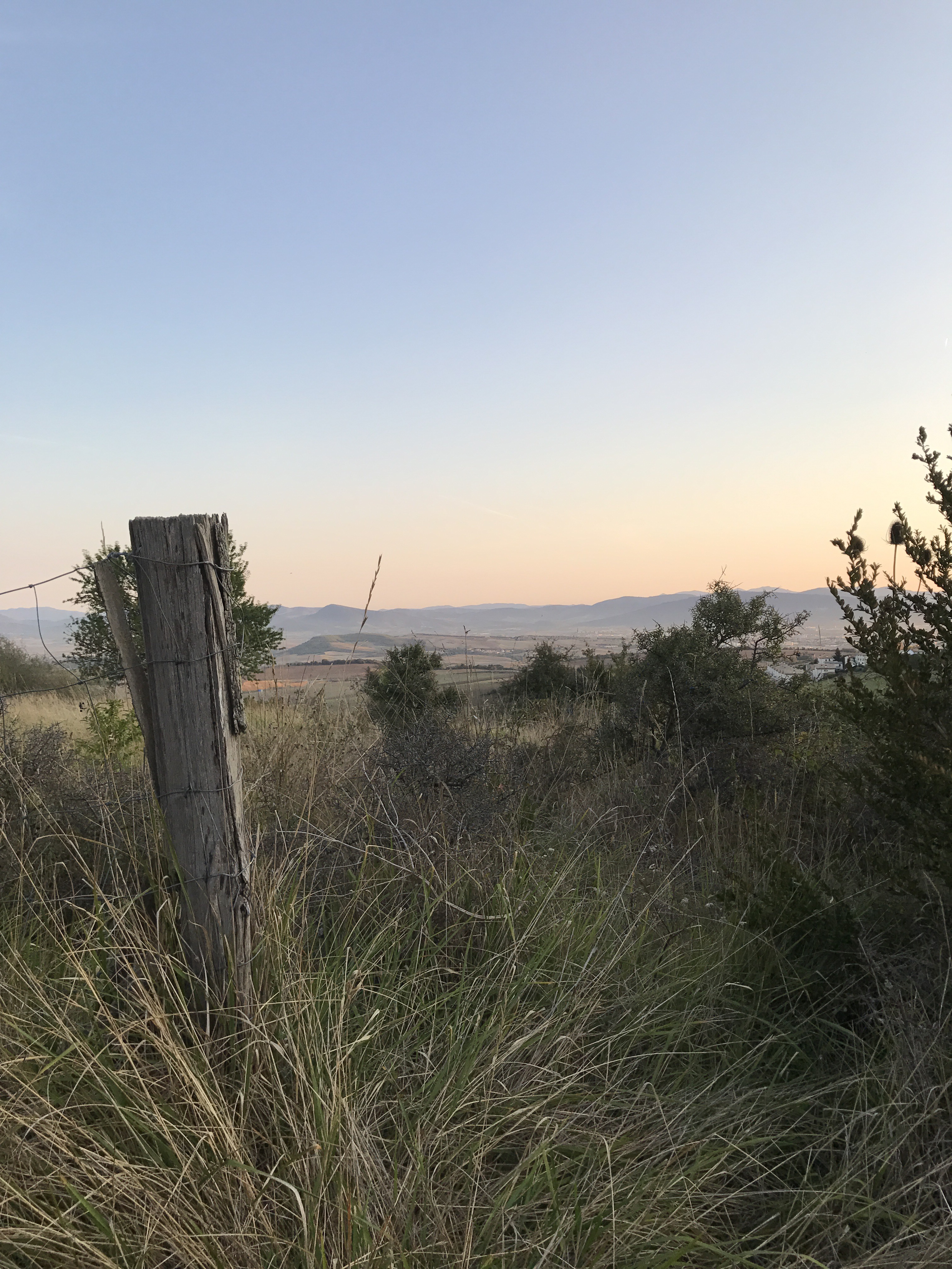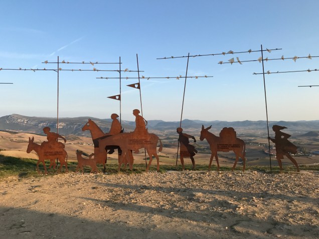 The day began with an ascent to the windmills and to Alto de Perdón, a pilgrim statue erected by the energy company. There is an inscription that reads: “Donde se cruza el Camino del viento con el de las estrellas” (“Where the way of the wind meets the way of the stars”).