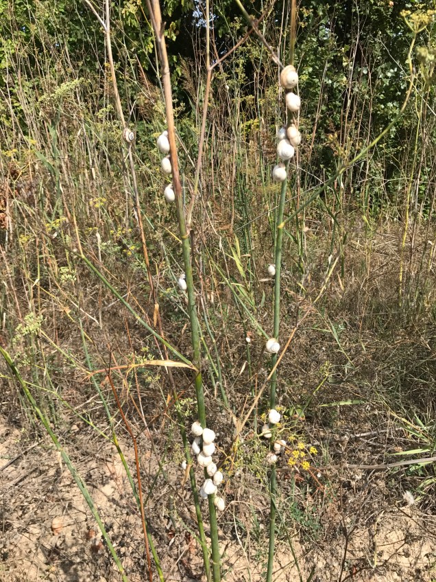More cornfields followed. As we were walking along, I noticed what must have been thousands and thousands of snails on the foliage along the roadside.
