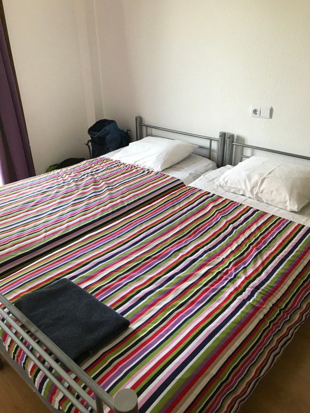 We finally arrived at our destination for the night. And what a treat…we splurged on a private room at the hostel for an extra $5 each (a lot on a pilgrim’s budget). Usually a bed costs $9-13 per night. No climbing to a top bunk or being hunchbacked on the bottom bunk. It was heaven!