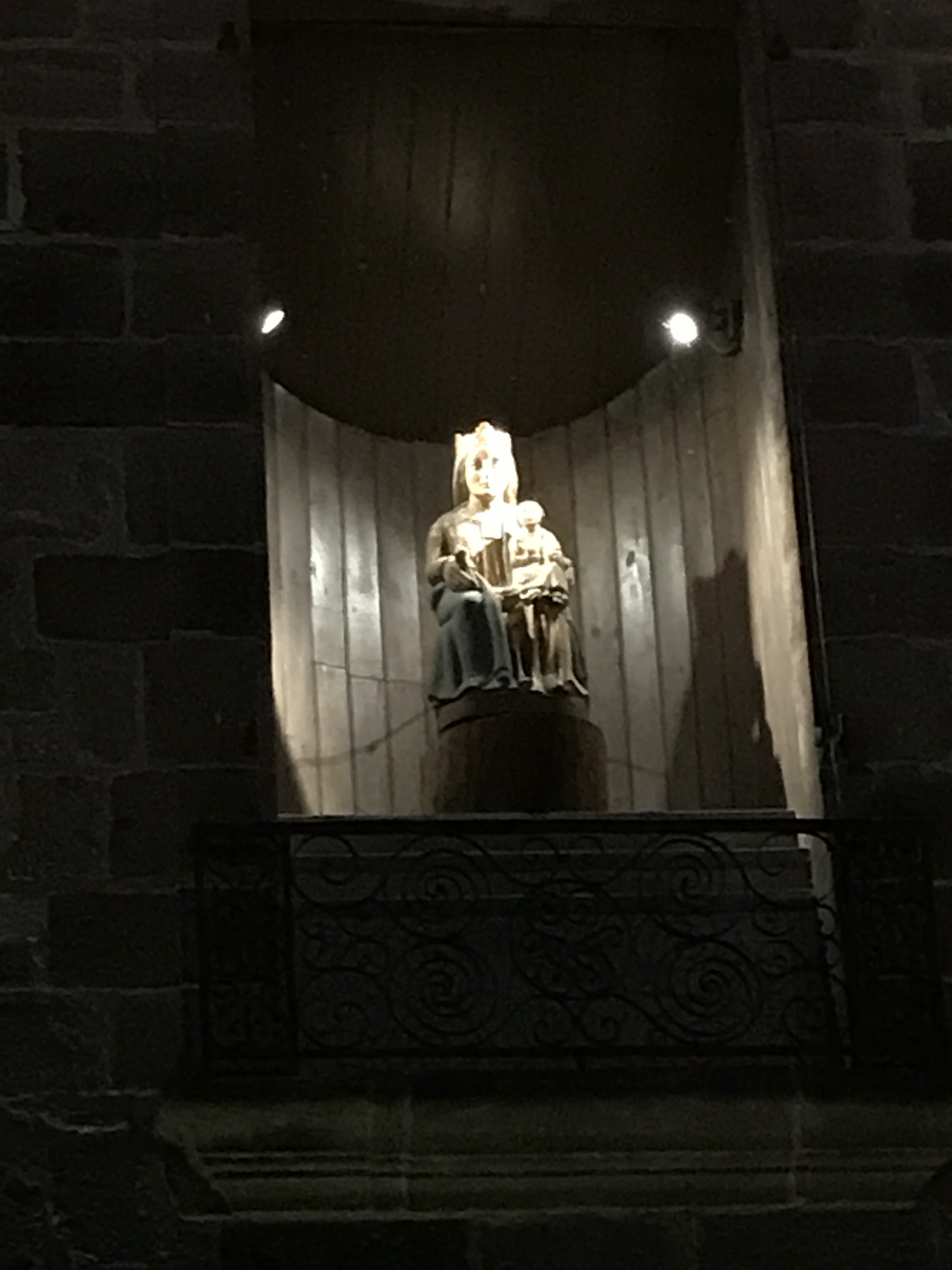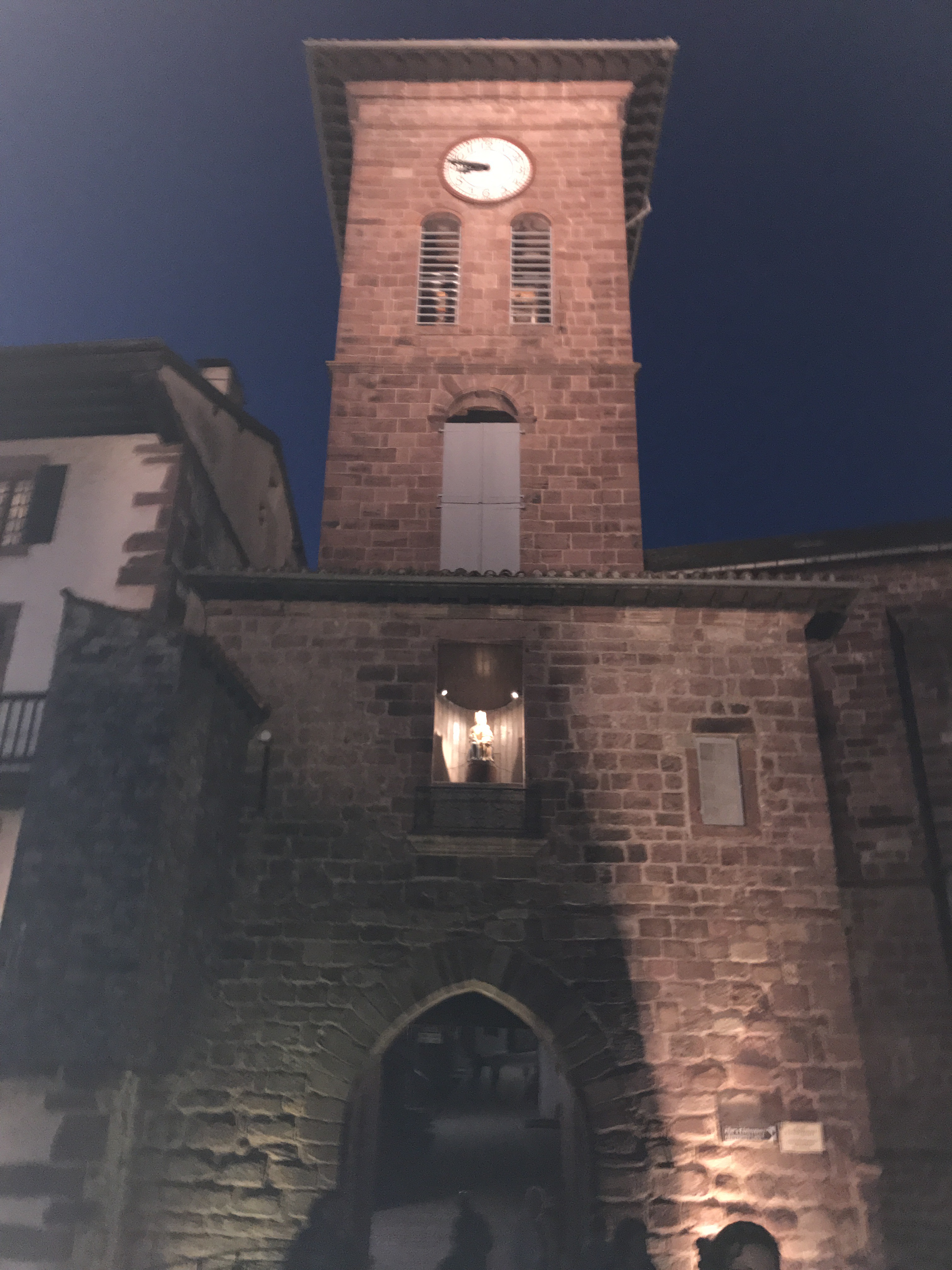 We then found our room, met our bunk mates for the night (a couple from San Fransciso), found some dinner and took a quick stroll around town. As we looked up, there hovering about us, illuminated and shining, was an image of Mary on the church tower. It was a beautiful ending to our arrival.
