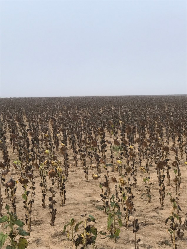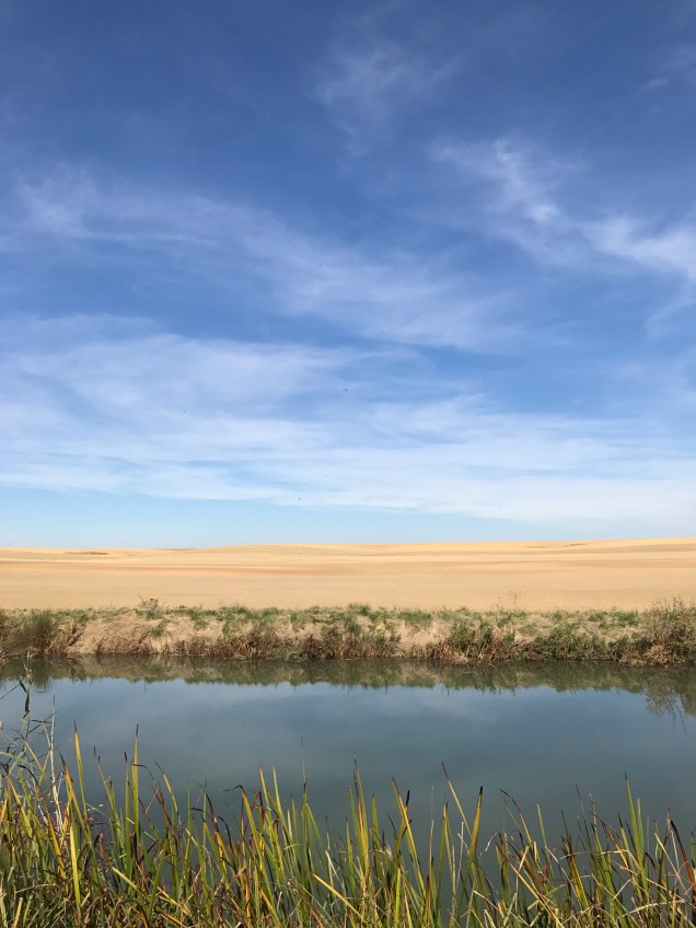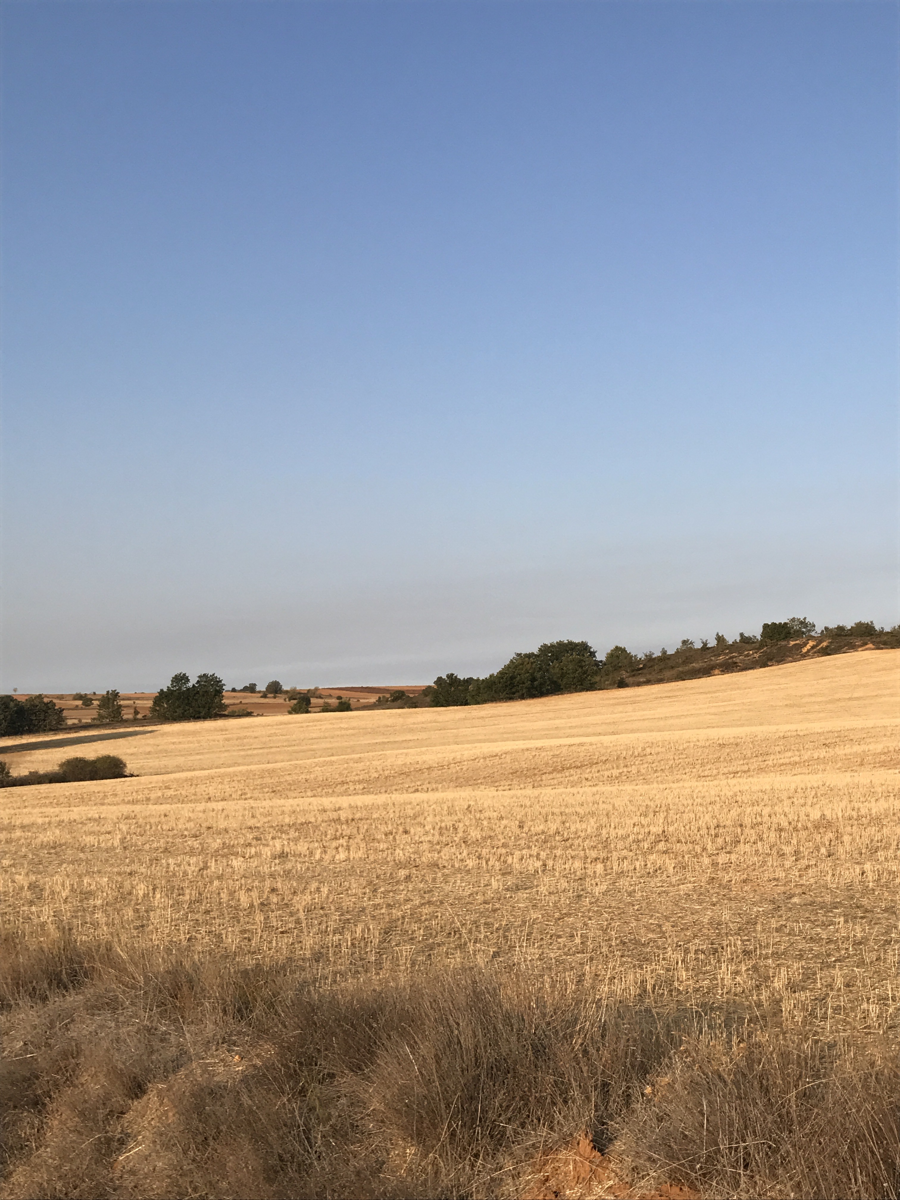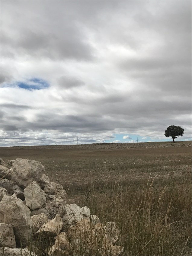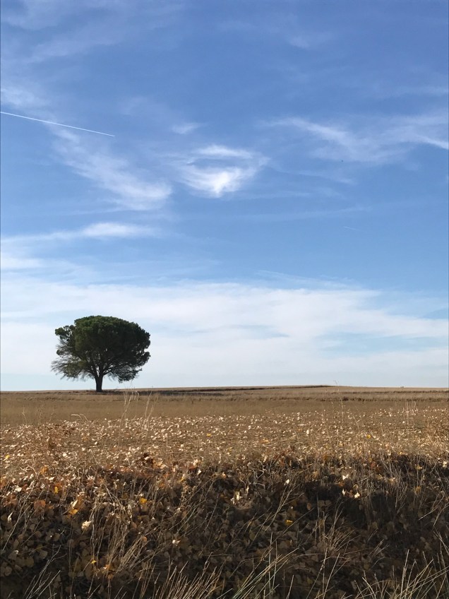 As soon as we begin walking, I feel the funk I’ve been in for the last few days lift. I don’t know whether it was the rest day in Leòn, being out in nature or just time, but I feel good. My spirits lift as we walk through a beautiful field full of birds. I see a flock of birds in flight tilt in unison and the underside of their bellies are a waving sea of deep blue. Another bird, black with white wings, dashes from bush to bush.