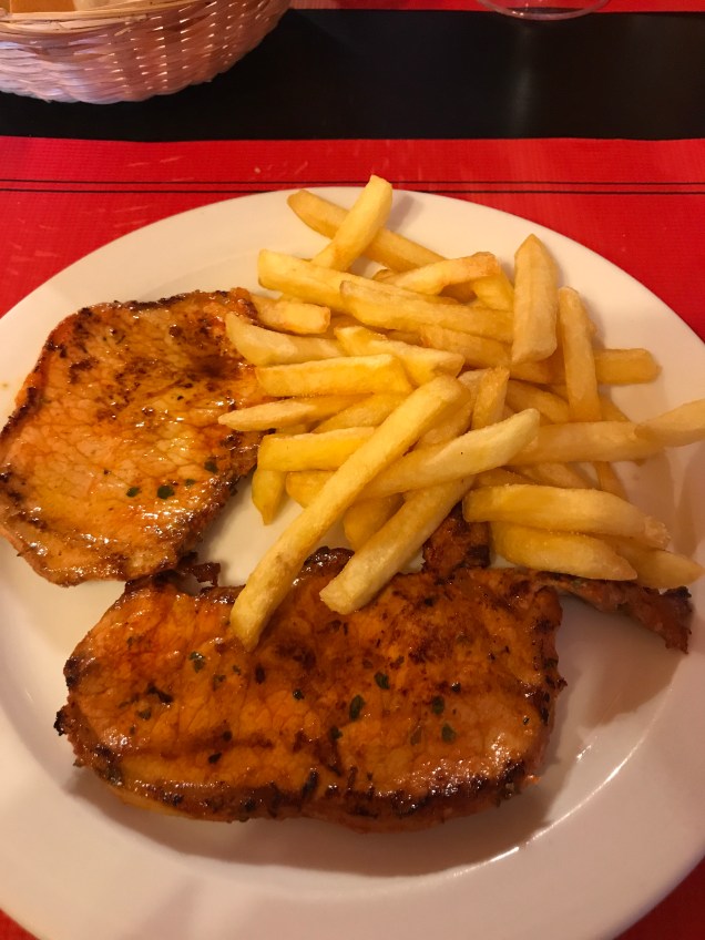 Dinner tonight is back to the typical pilgrim menu of thin pan fried meat and French fries. And then we get settled into our bunk beds in a room full of about 15 others. The gentleman sleeping on the bottom bunk next to me is from South Korea and he is playing Loretta Lynn songs. As “Stand by Your Man” crooned in the air, I snuggled into my sleeping bag and thought about my Bryan and how much I missed him. And while I still miss home, tonight I feel oddly comfortable being back on the trail and I’m excited to knock out the last part of this journey.
